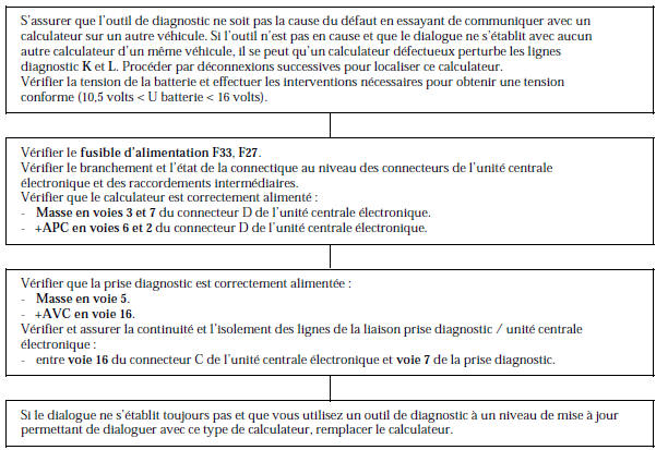 Revue technique automobile Renault Avantime: Absence de dialogue avec l'unite centrale electronique