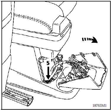 Déclipser l'enjoliveur de console centrale avant (7) en le tirant vers le haut par la partie arrière, puis en le dégageant vers l'arrière.
